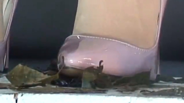 美女のハイヒールで潰されていく様子を最新、高画質の4Kでも撮影。